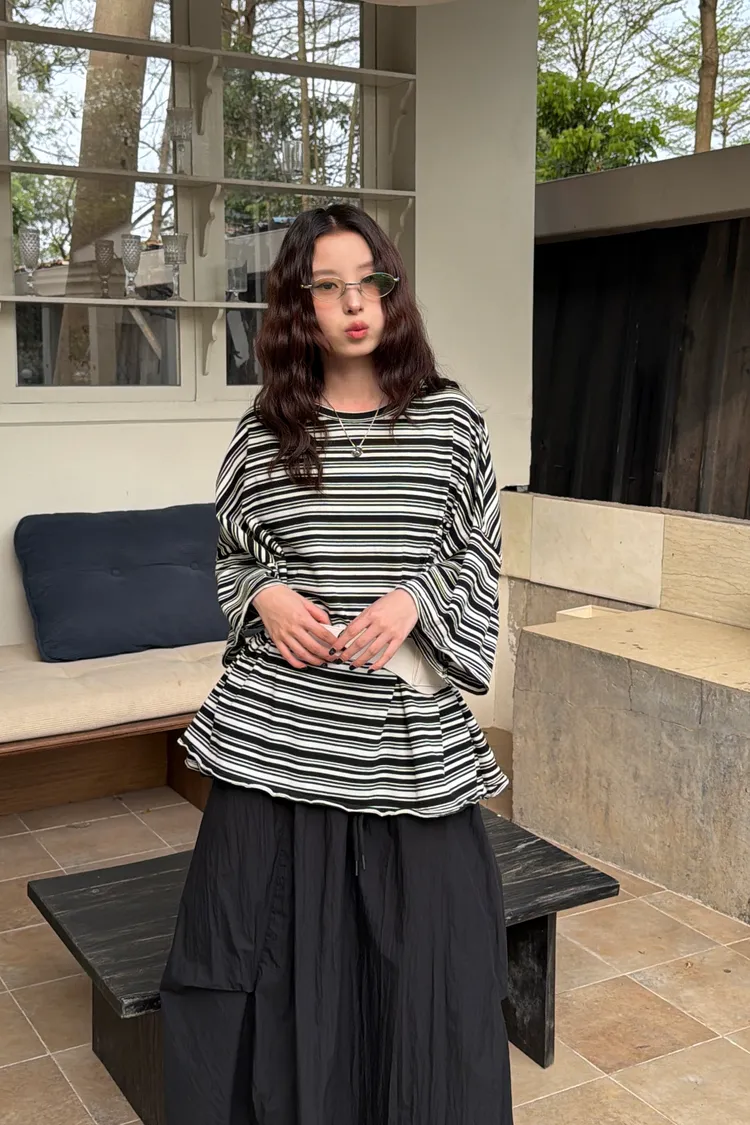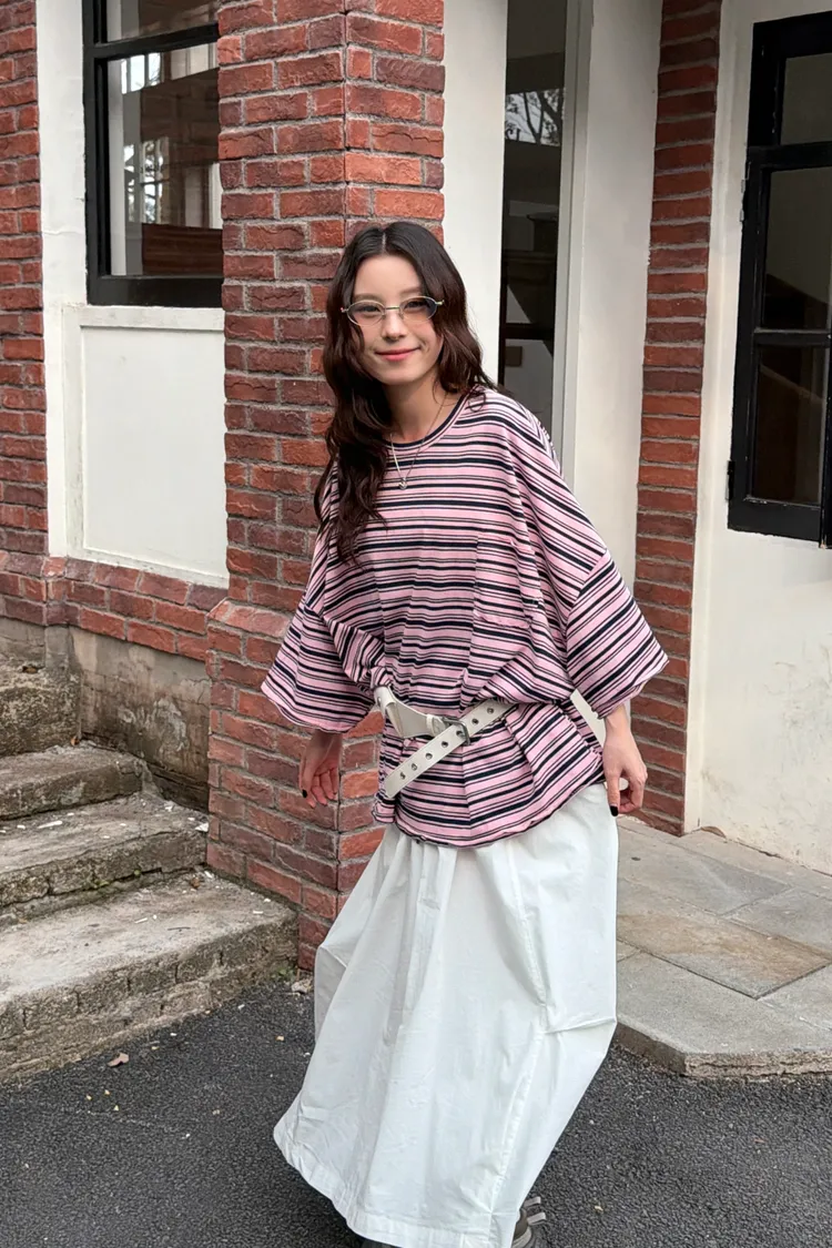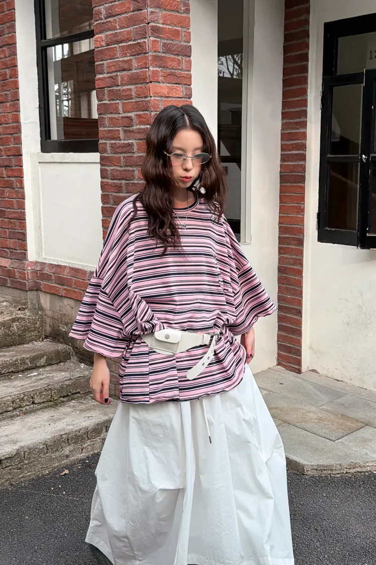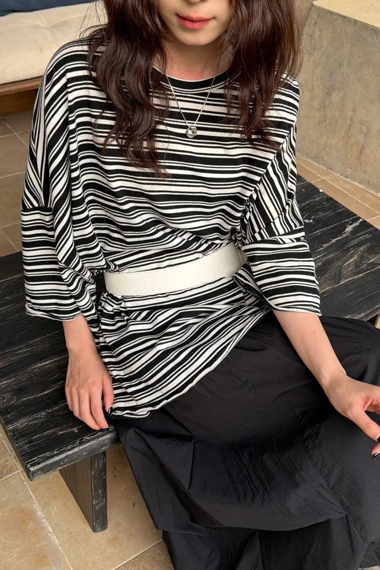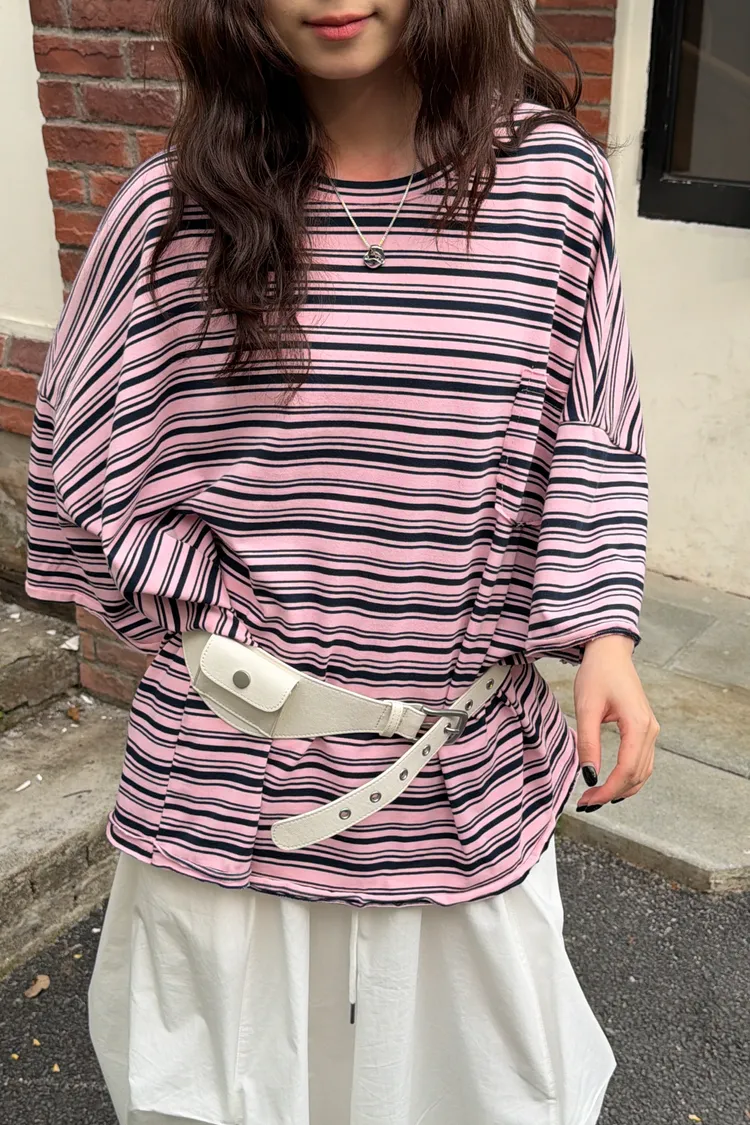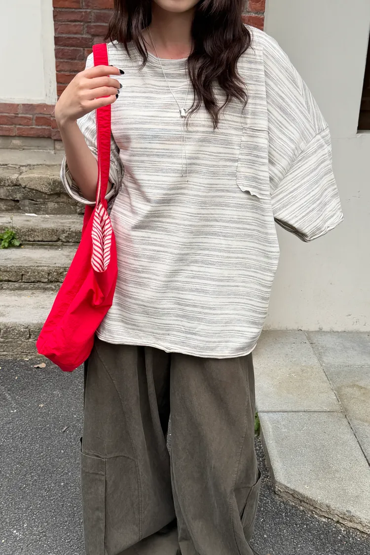 摸到讓人愛上!超舒服卷邊條紋T(3color)