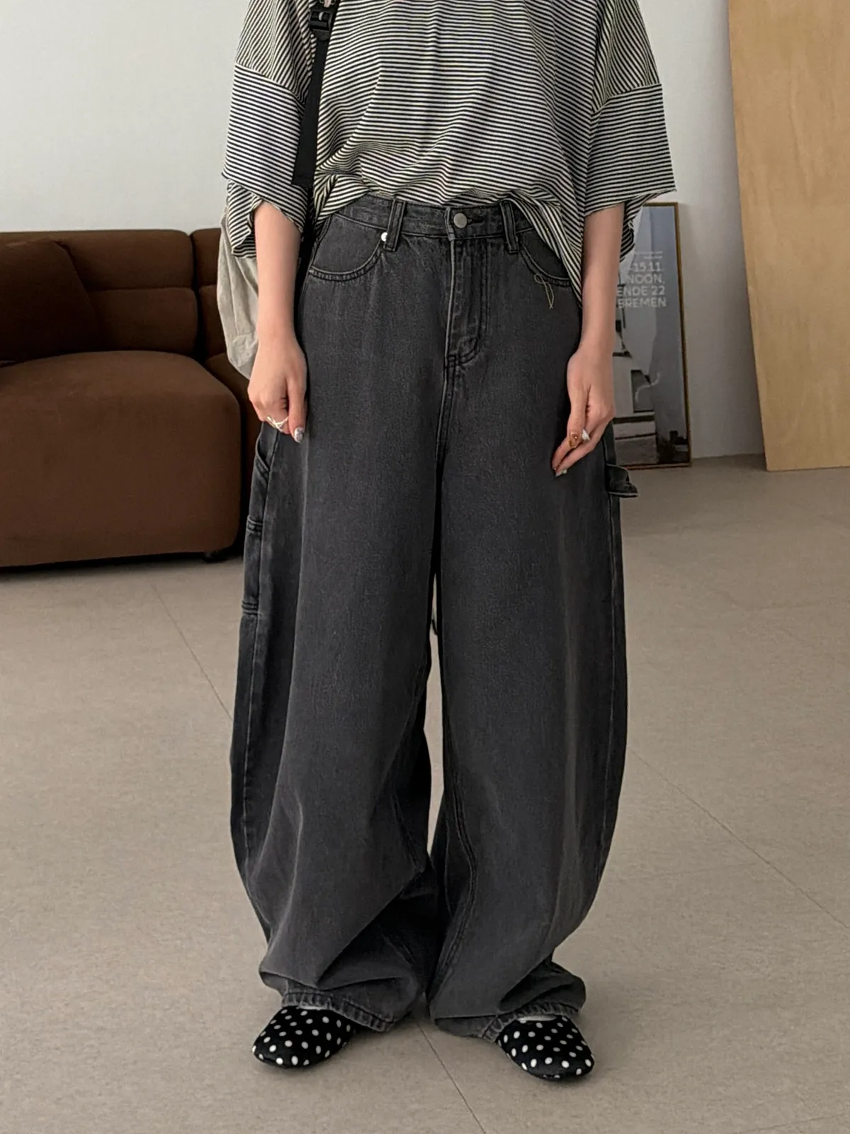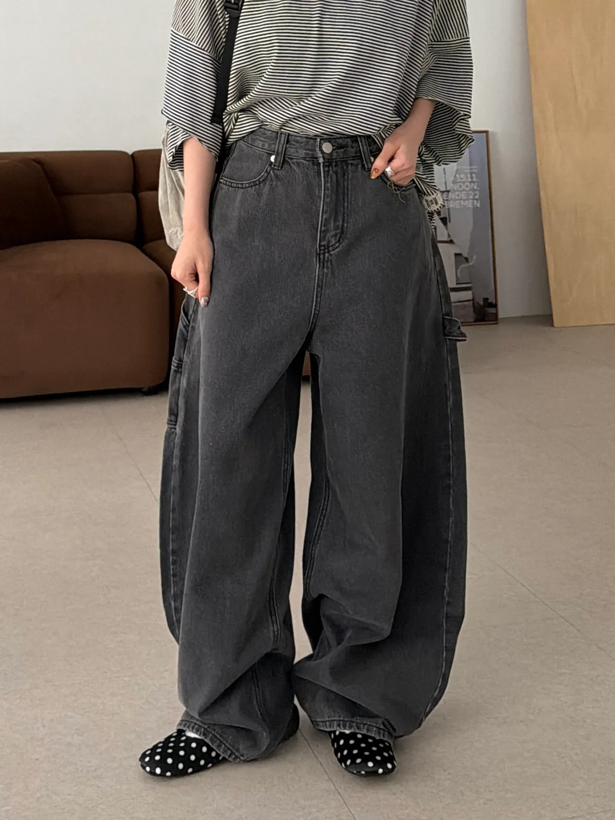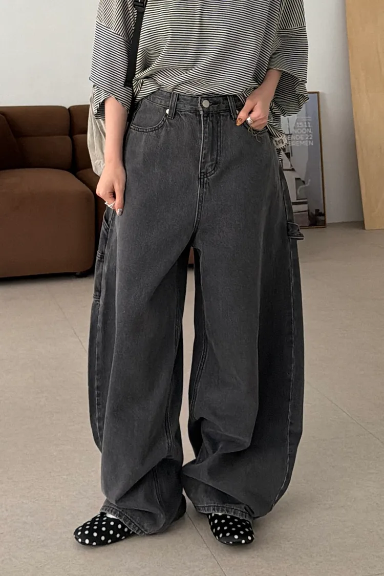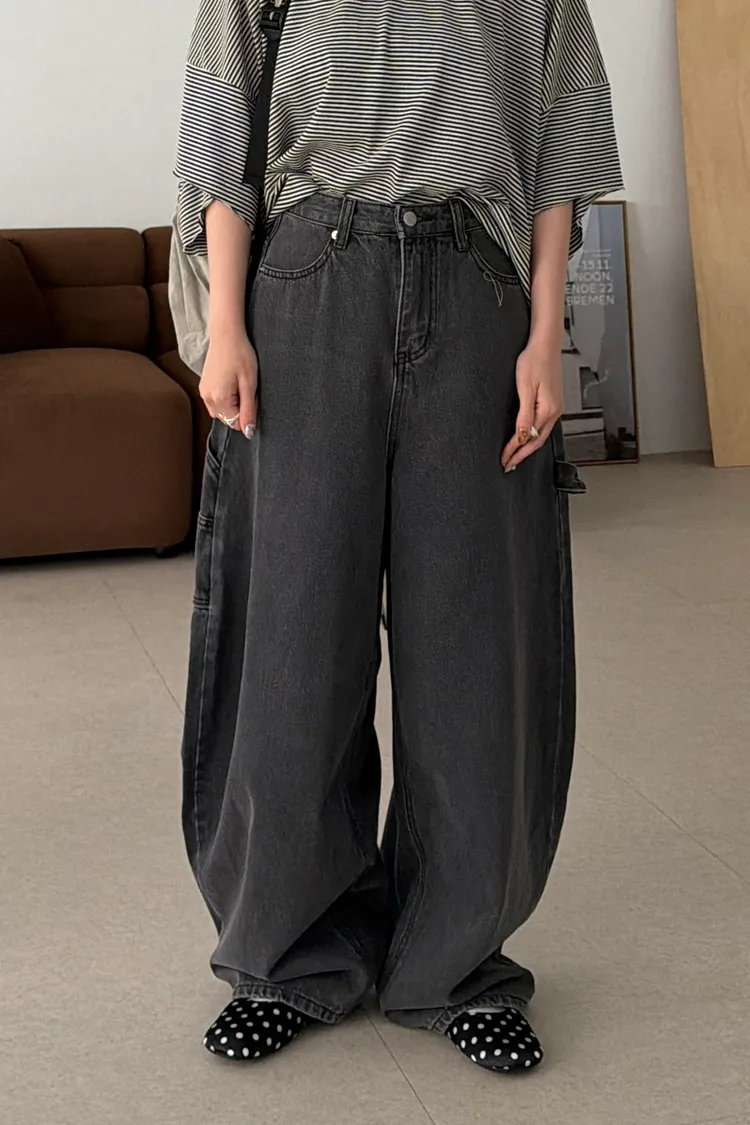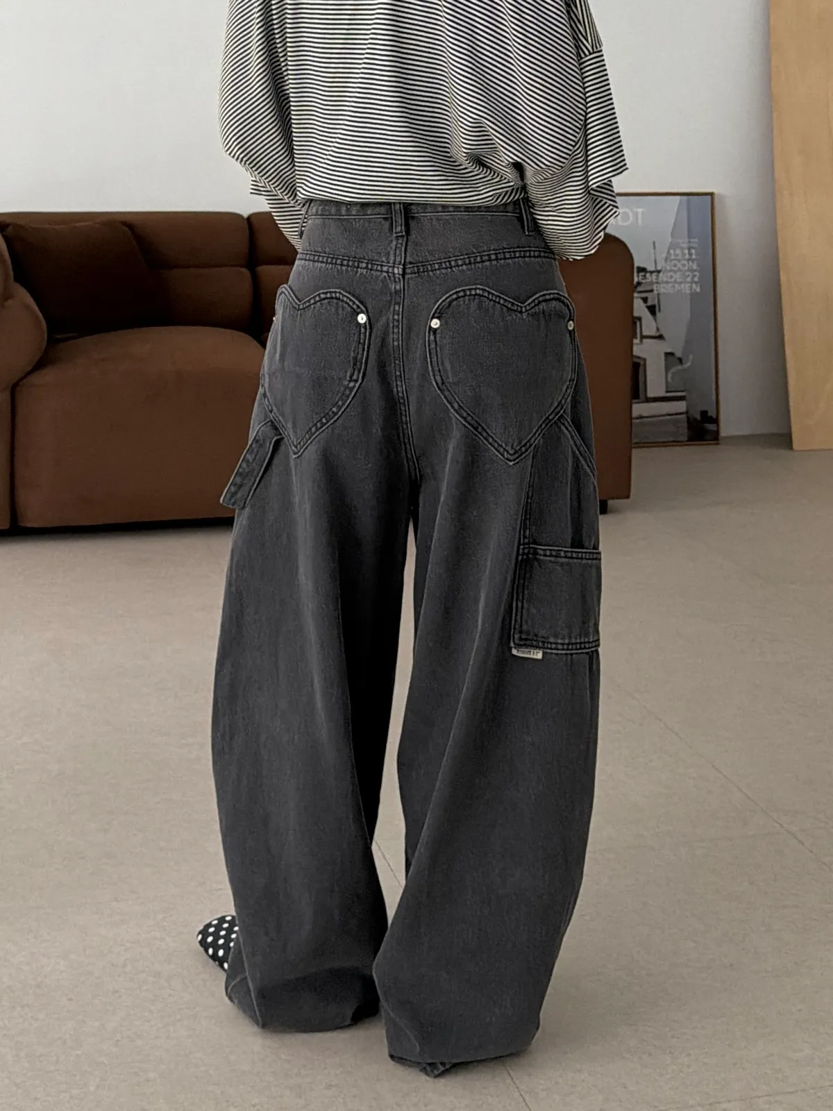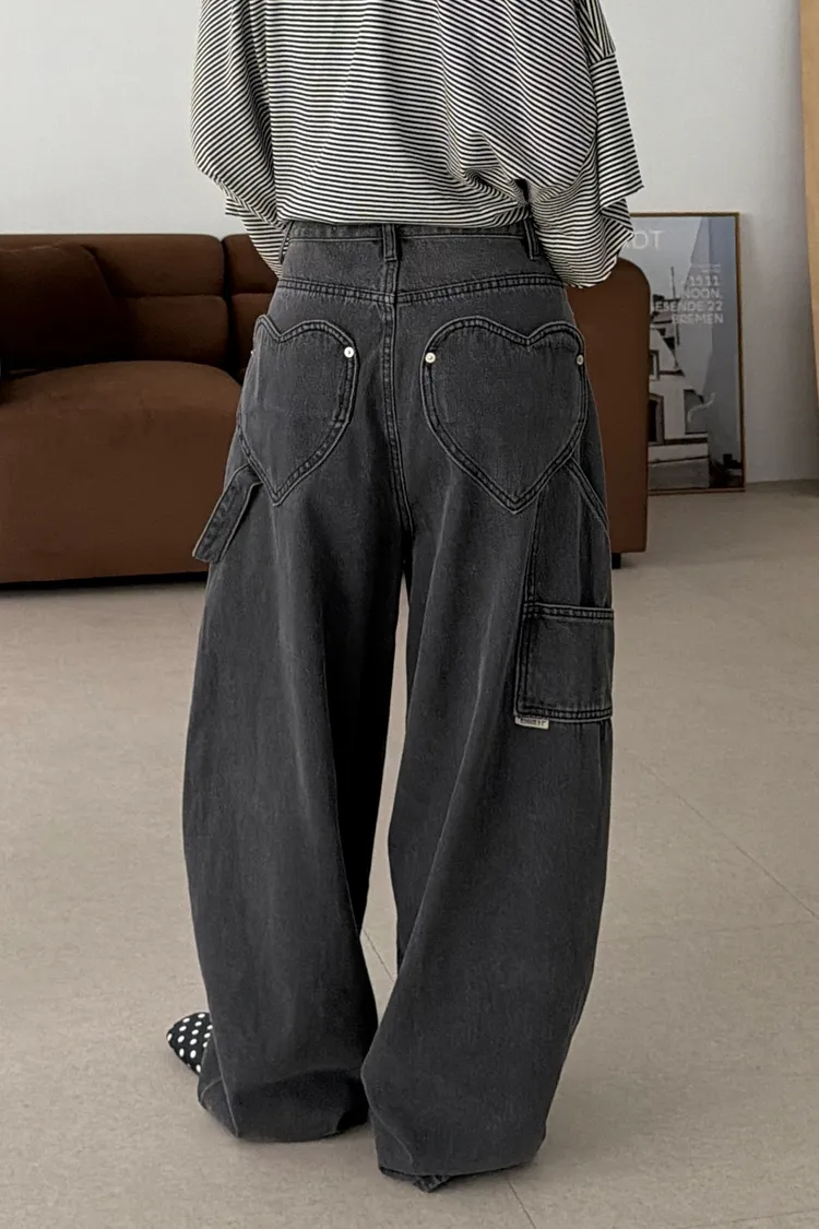 愛心口袋!灰調工裝繭型褲(SML)