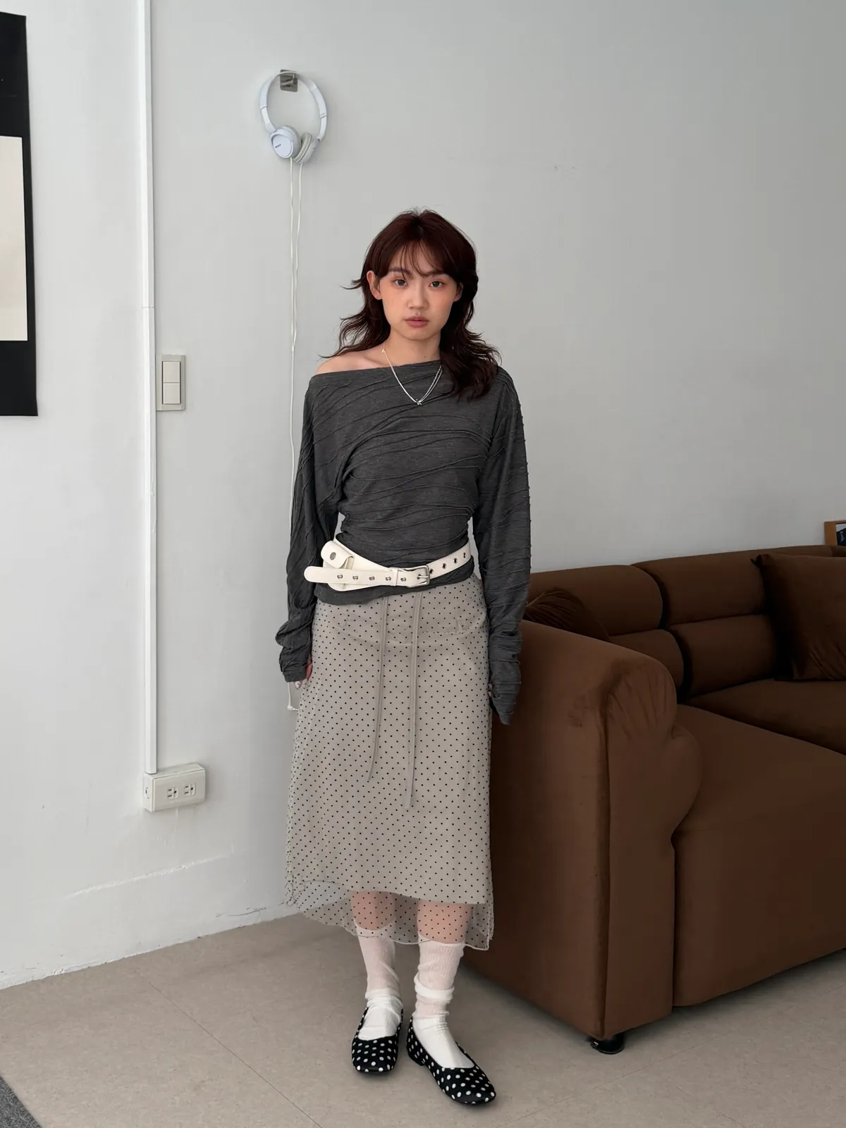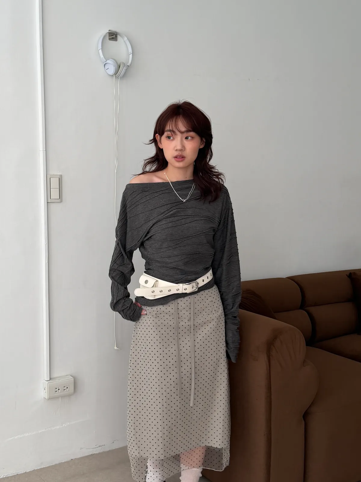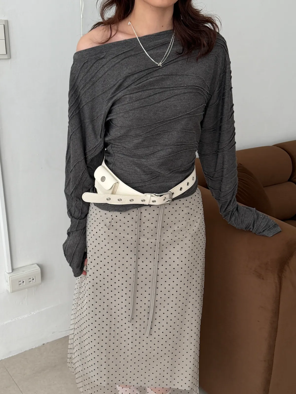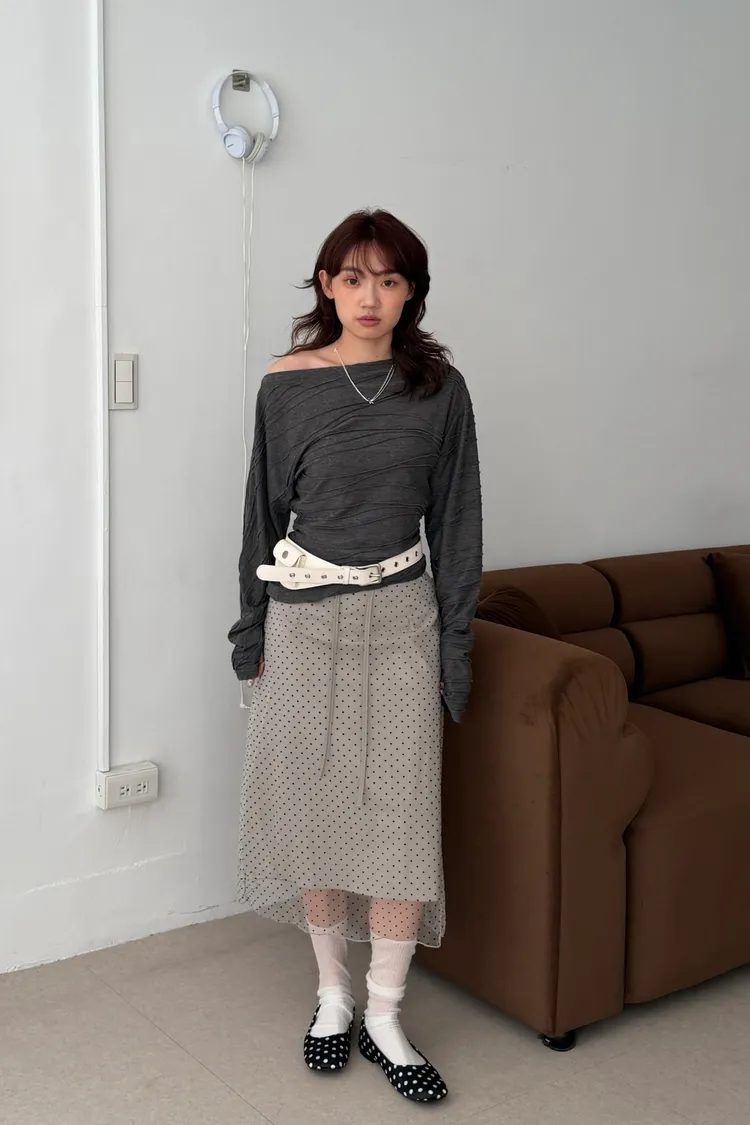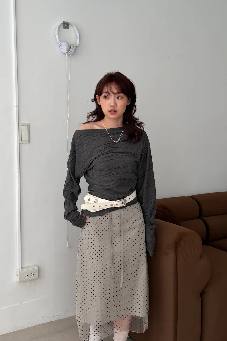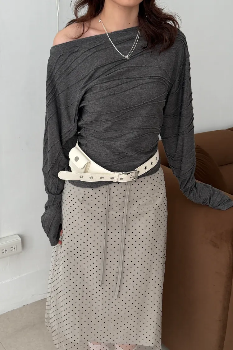 韓女必收!褶皺感斜領T(2color)