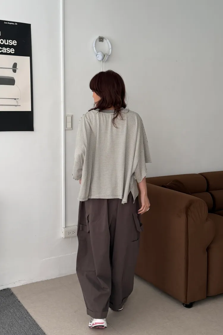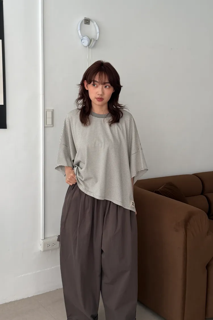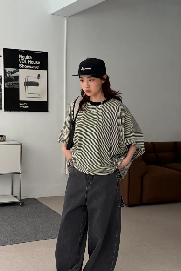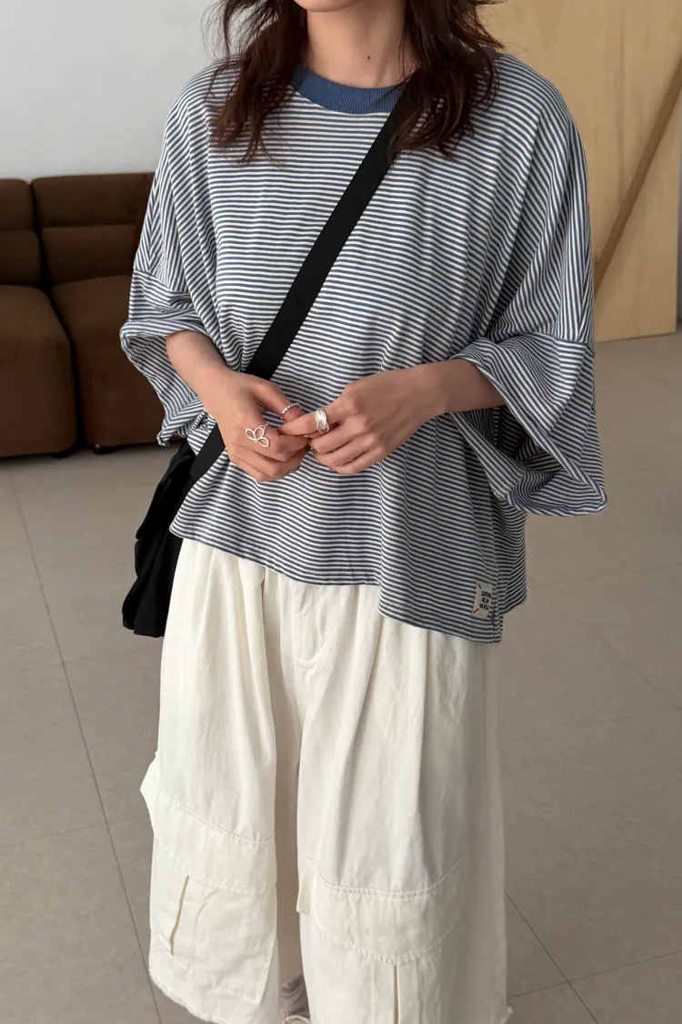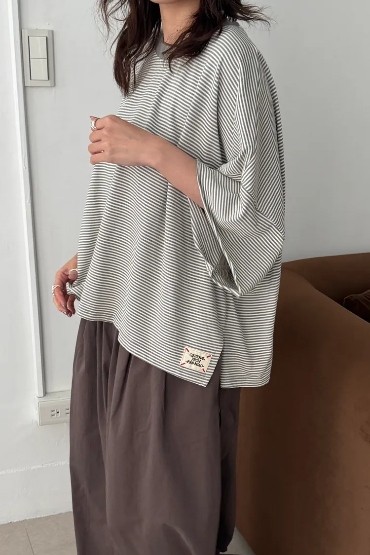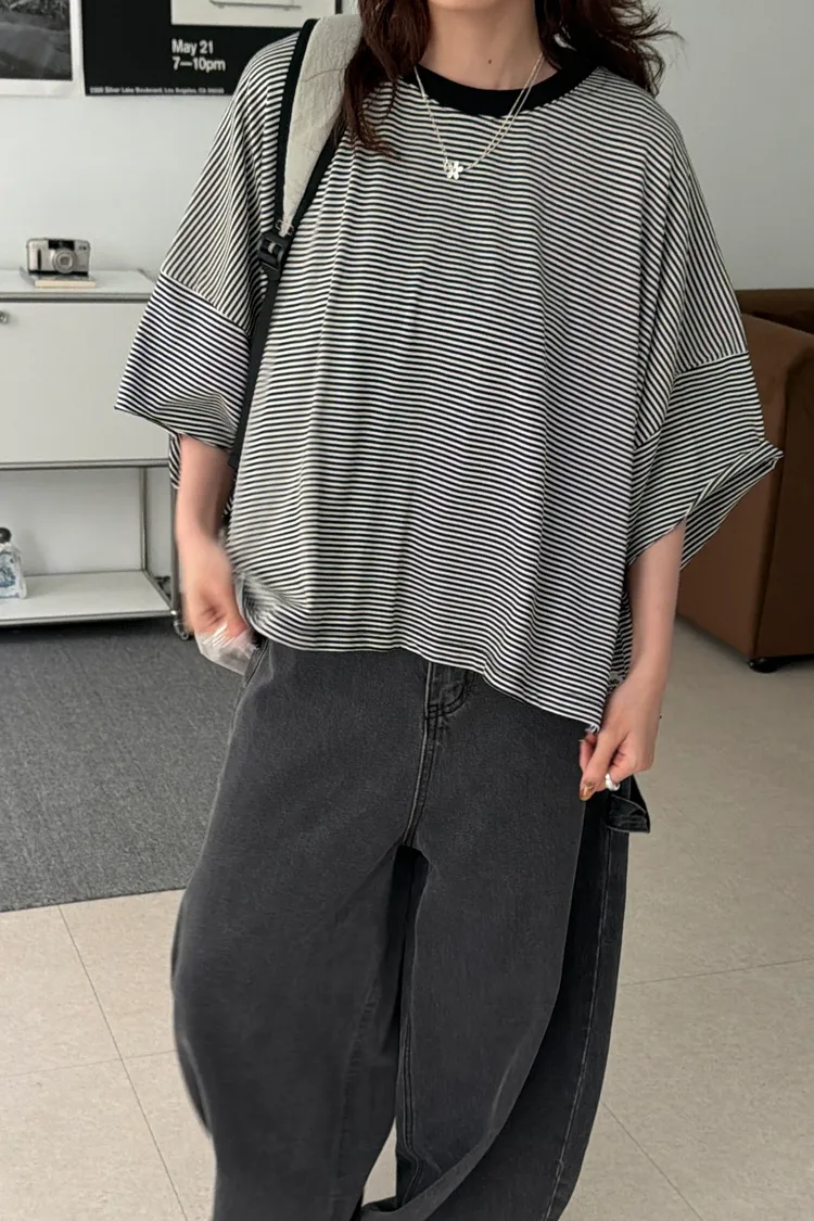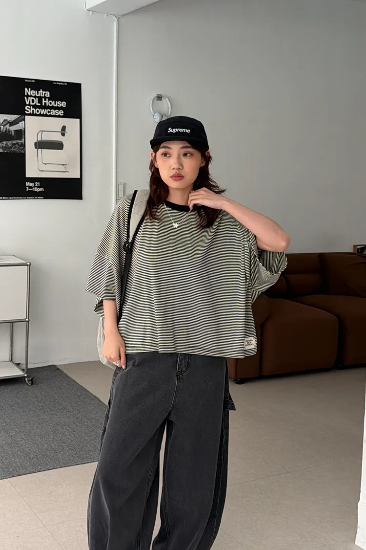 美式布標!寬鬆條紋短版T(4color)