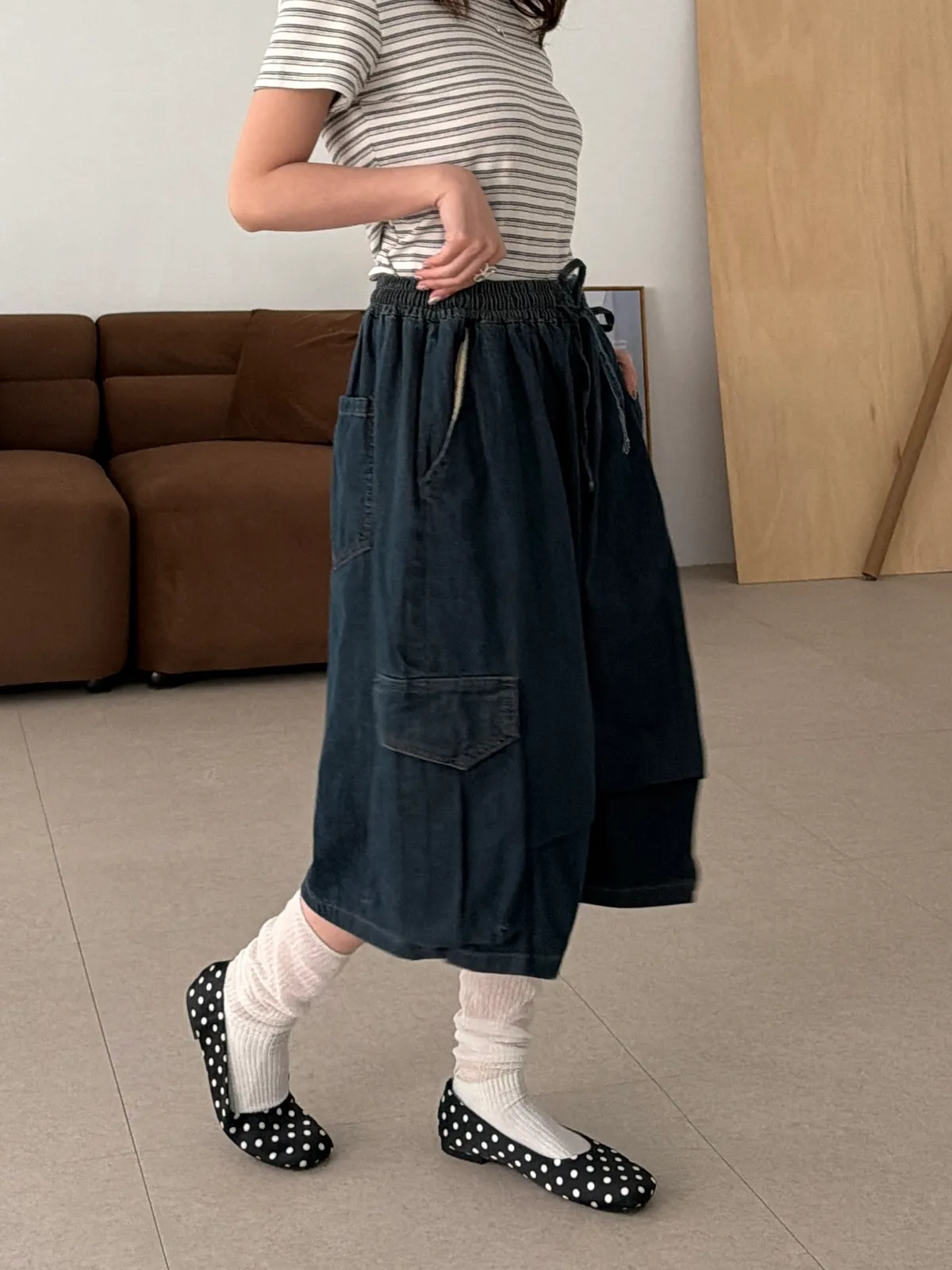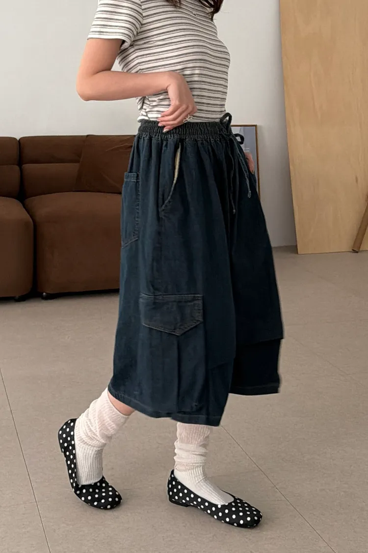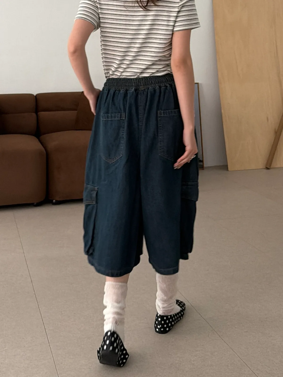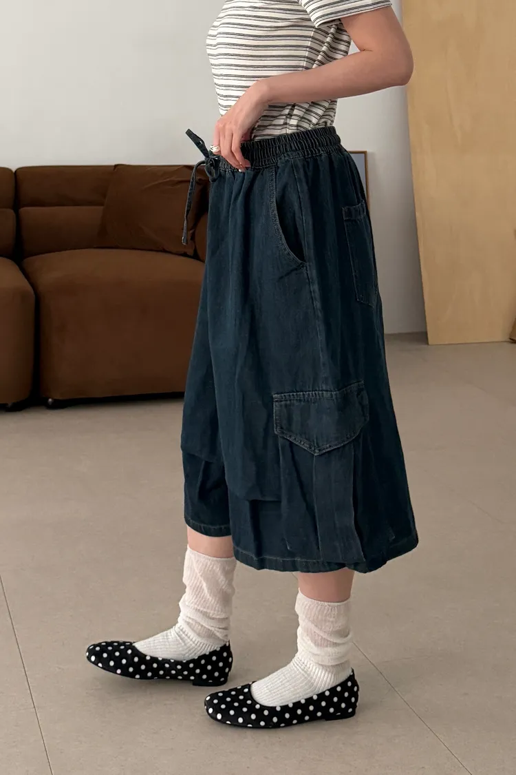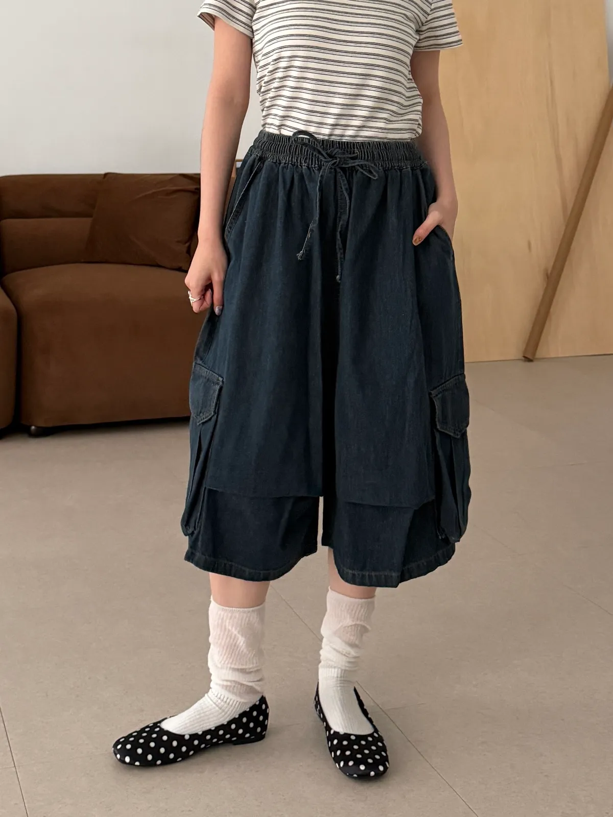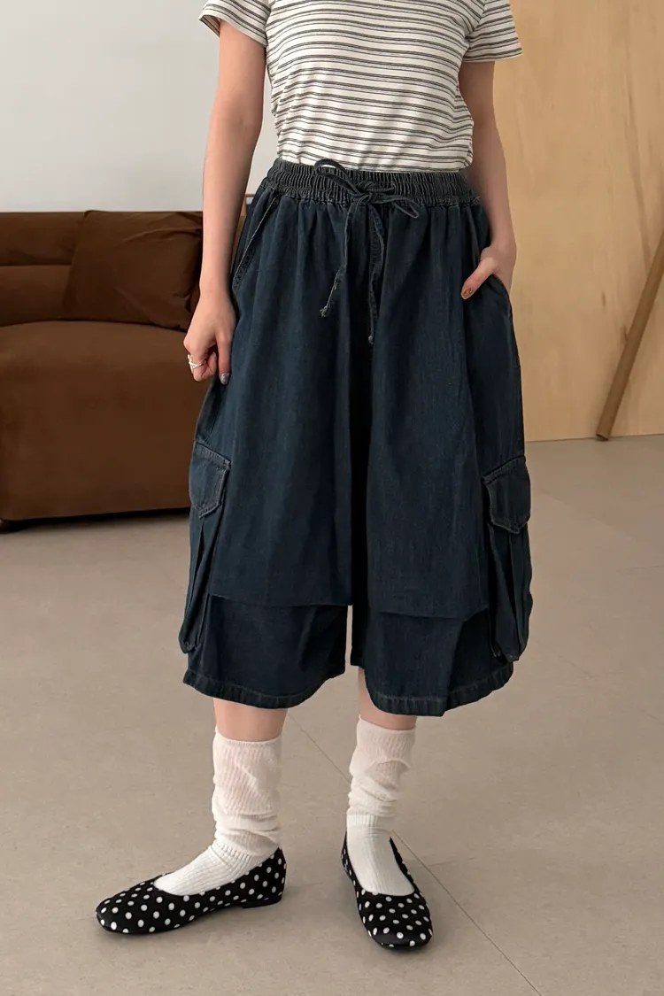 鬆弛工裝側口袋七分褲(1color)