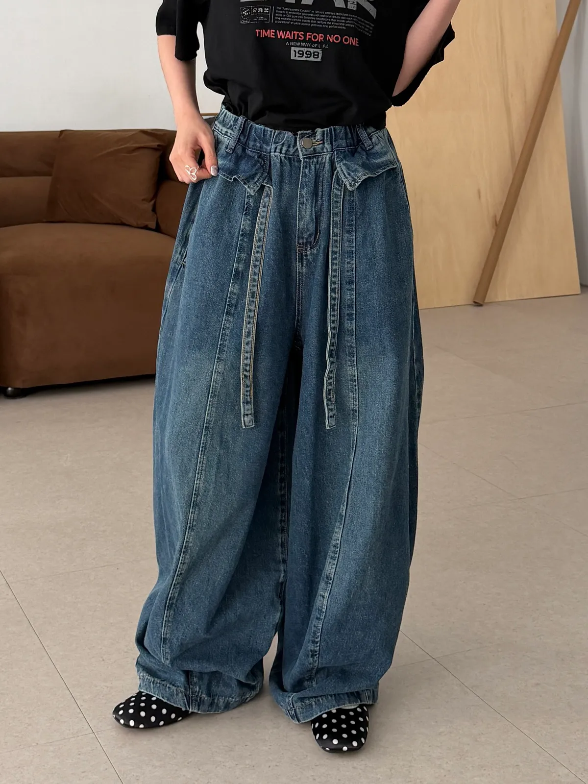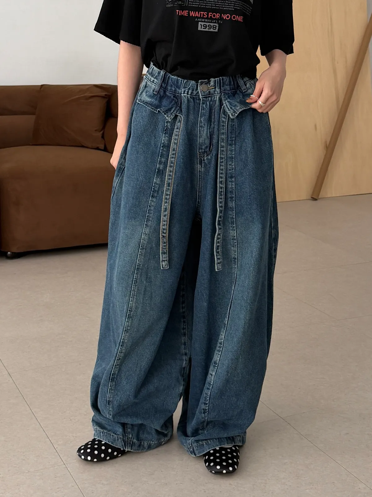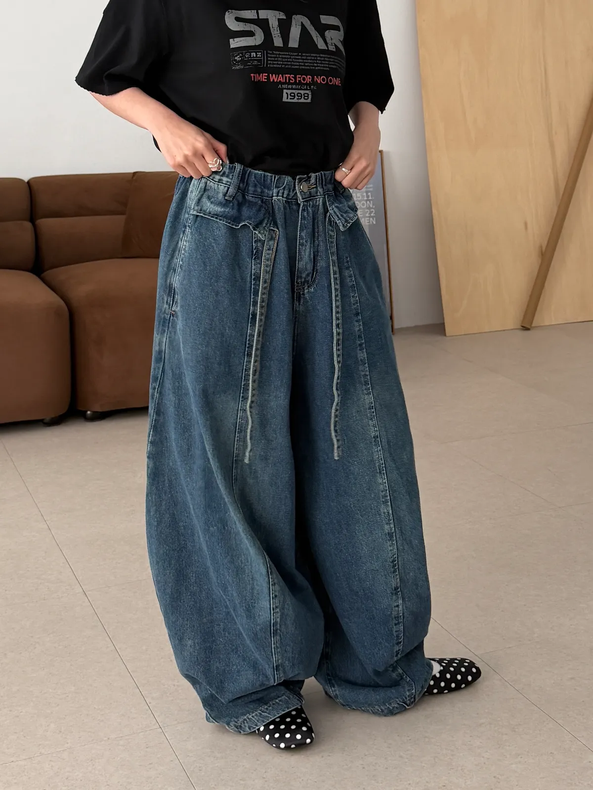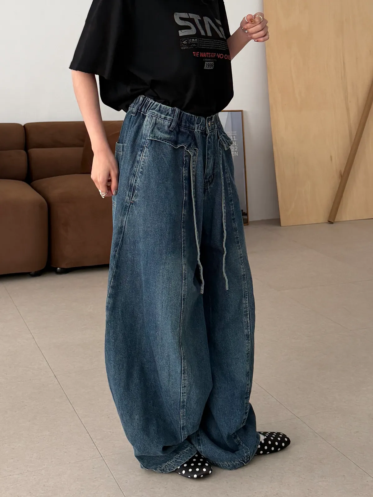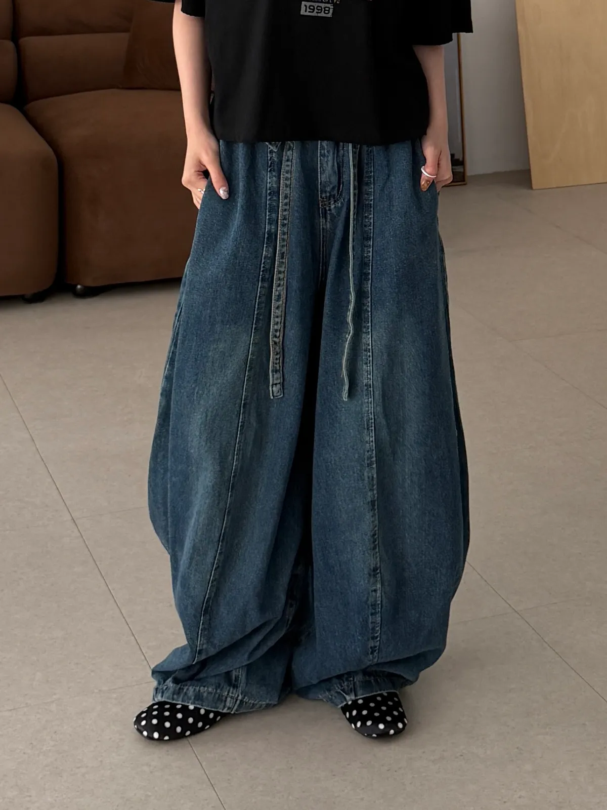 下腳褲管有抽繩可以縮口多一點