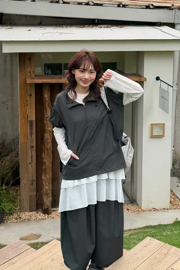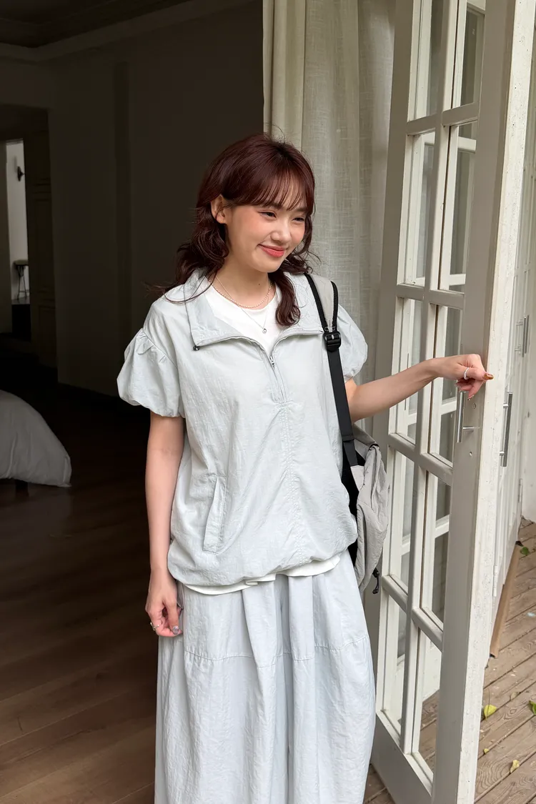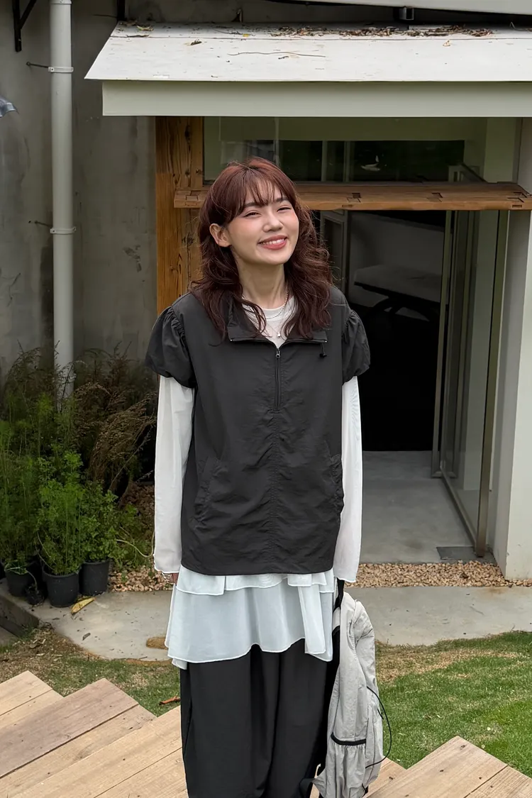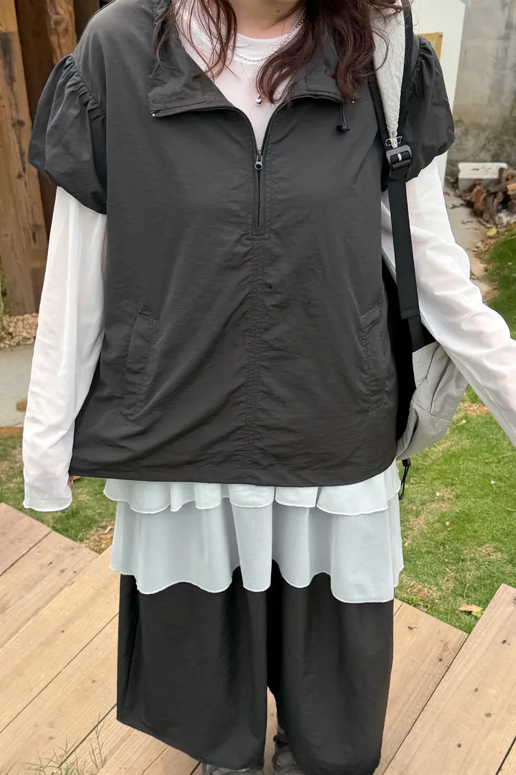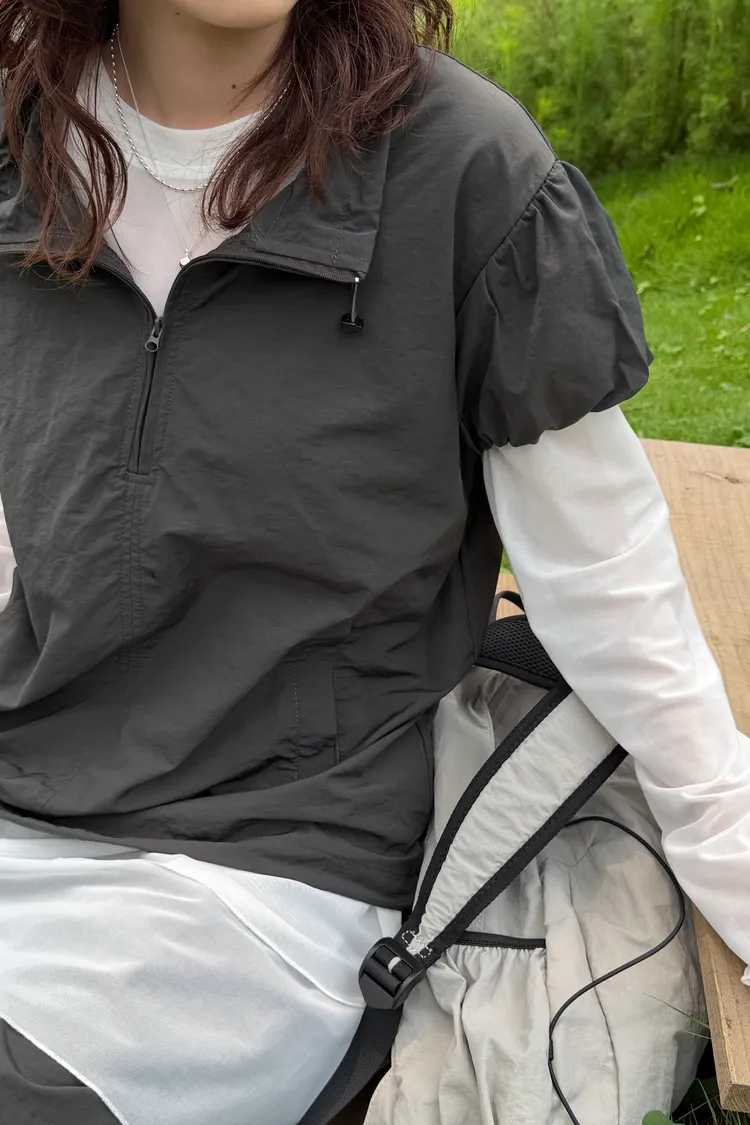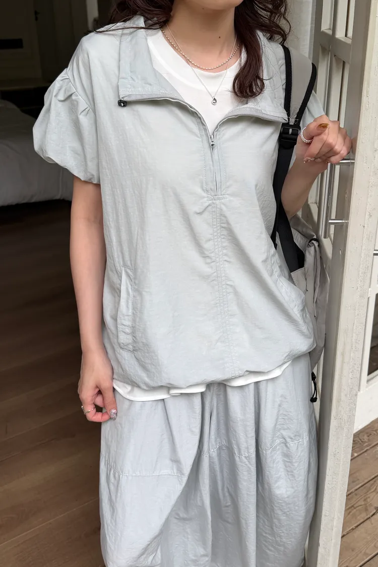 極簡拉鏈短袖罩衫(2color)