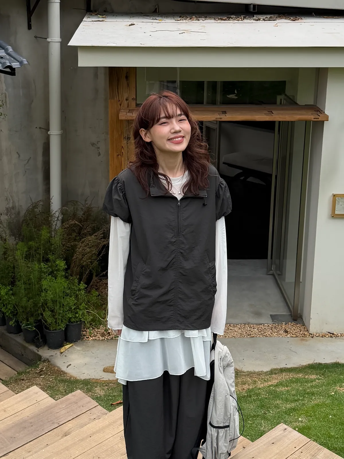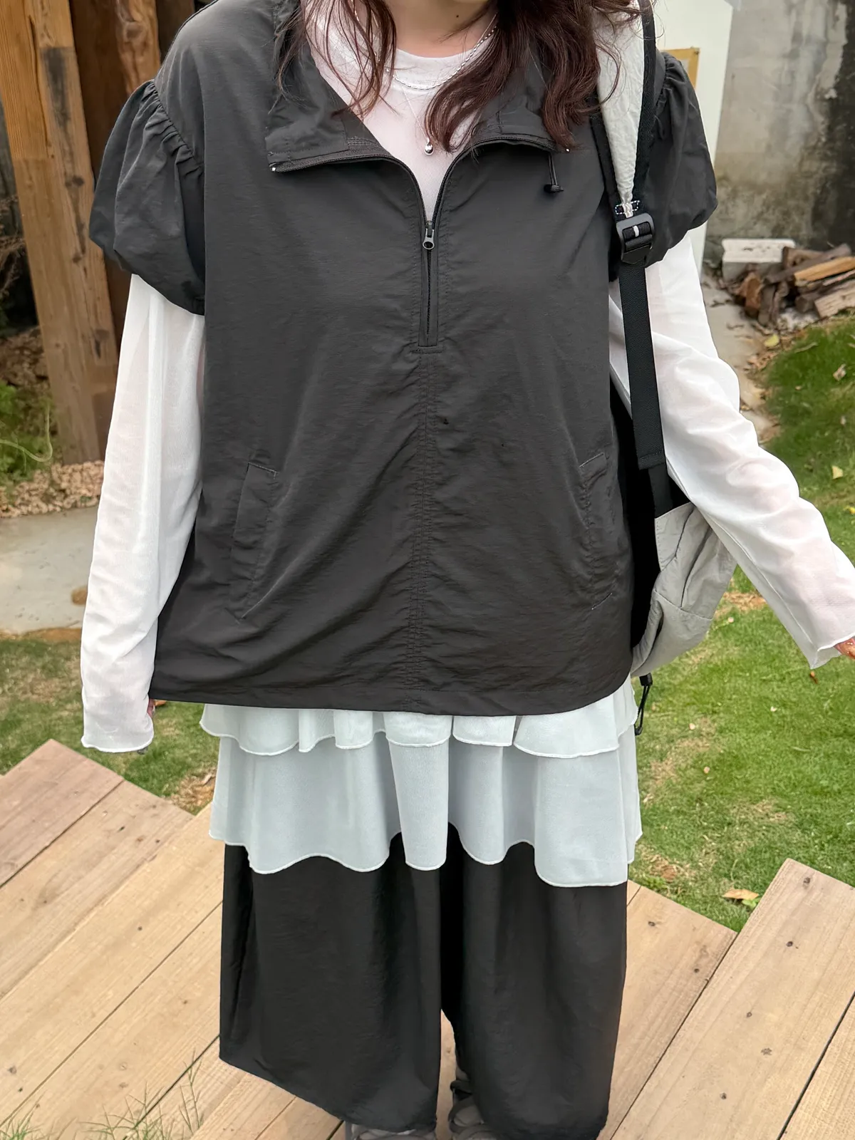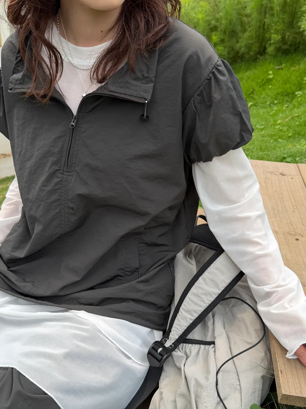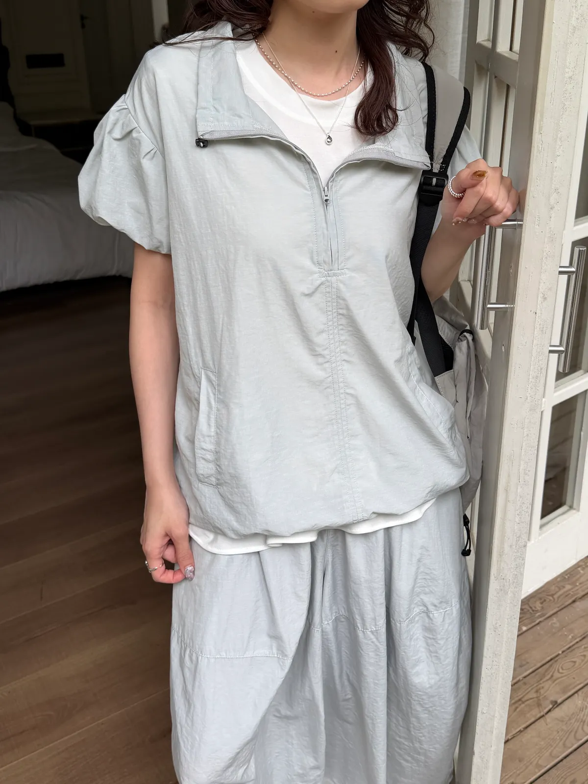 極簡拉鏈短袖罩衫(2color)