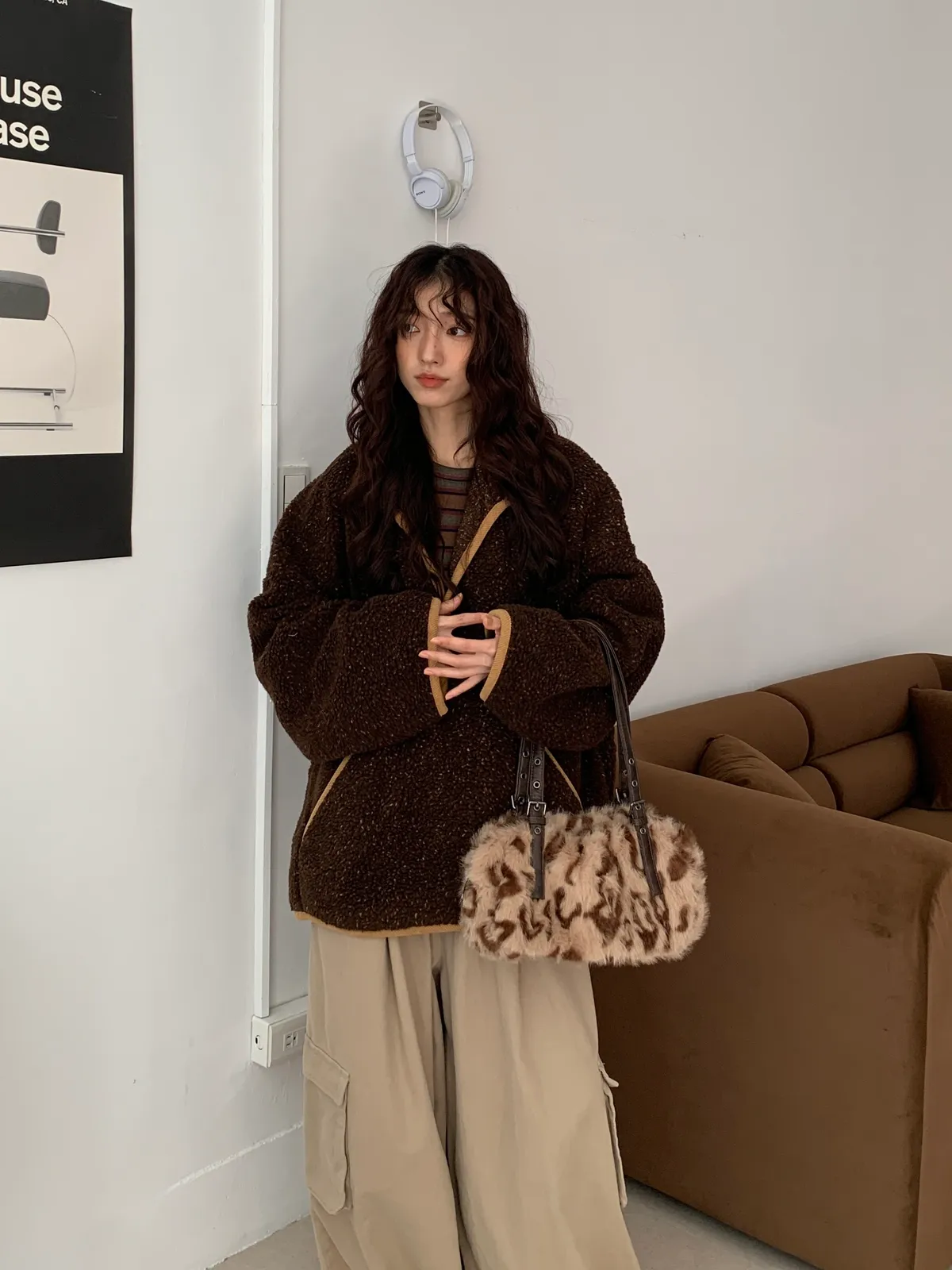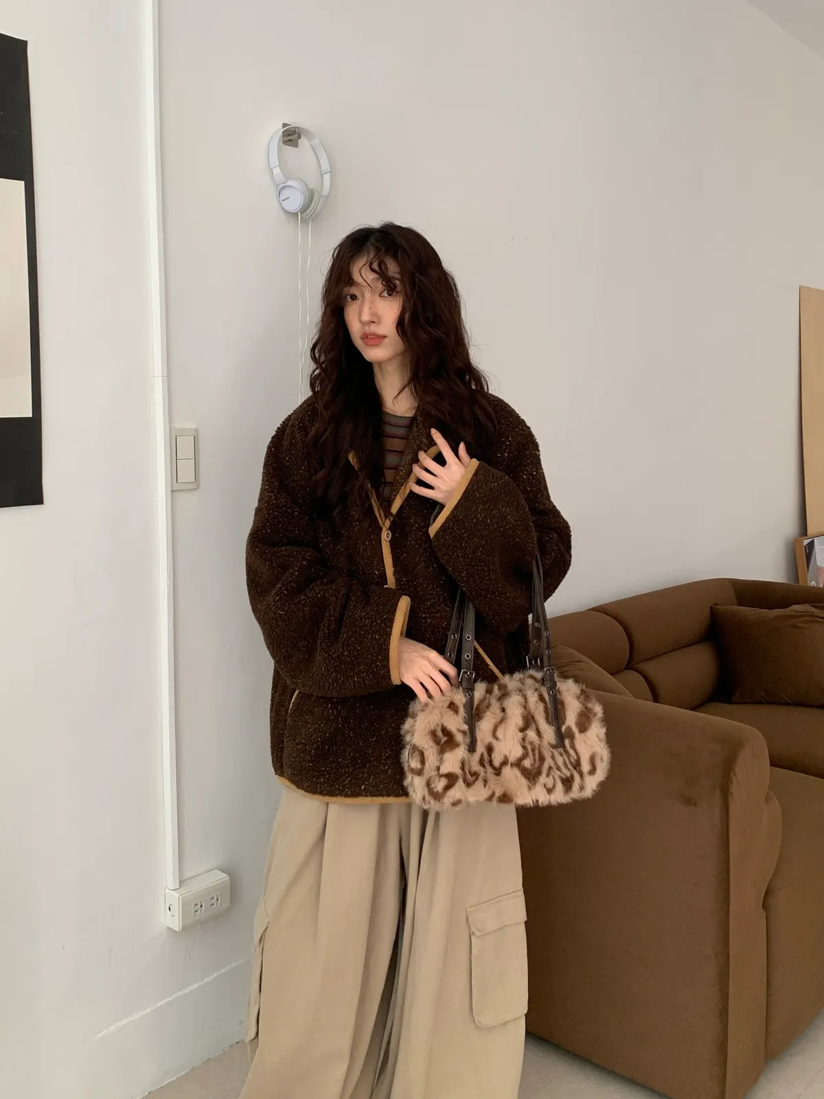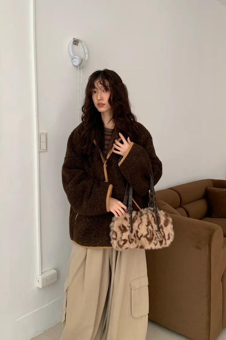 黑色內裡有一格貼邊暗袋怎麼會有這麼可愛的曲其豹紋