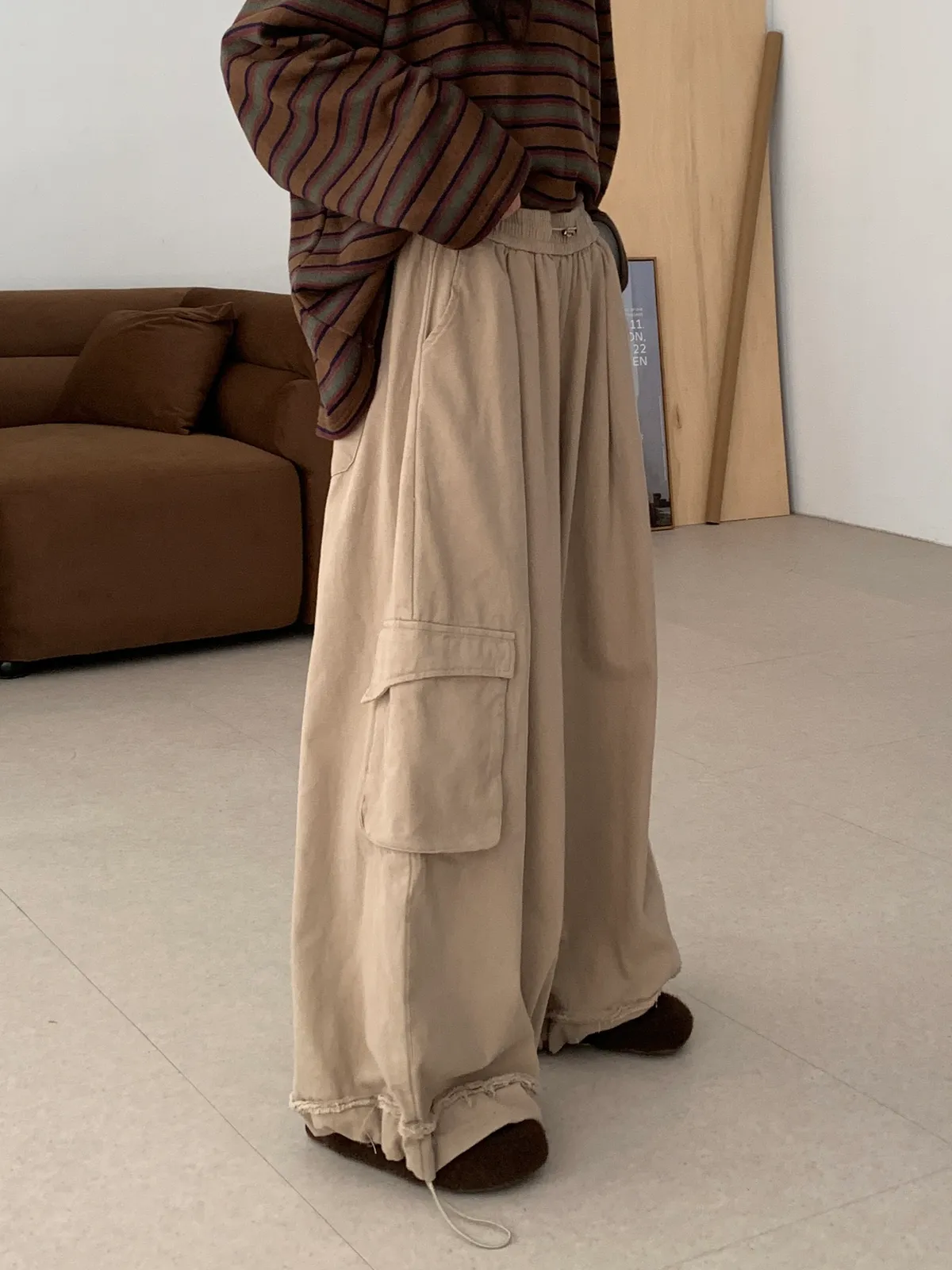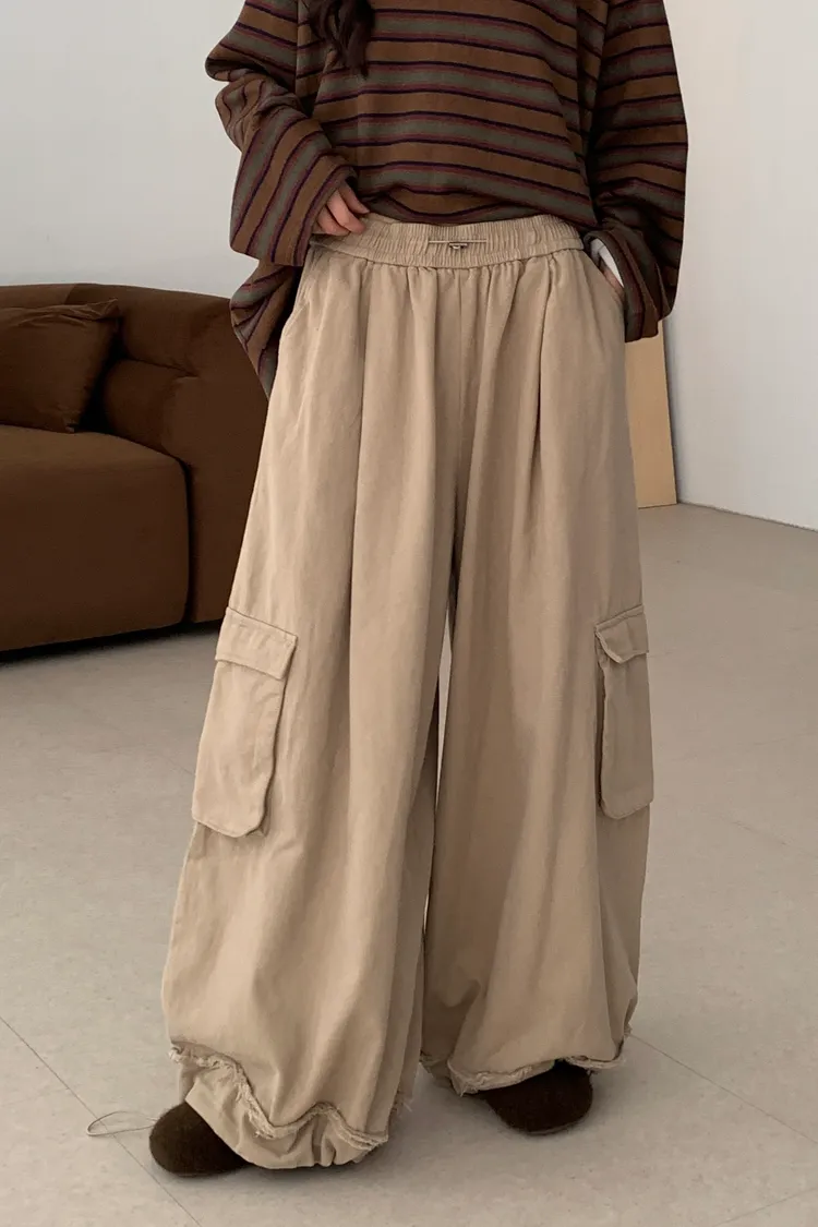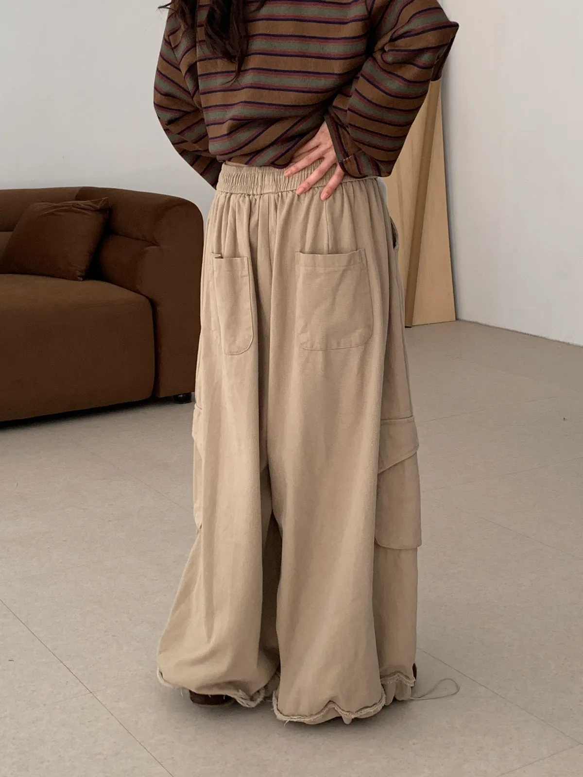 後來我發現下腳她有抽拉繩抽起來變繭型褲版更好看