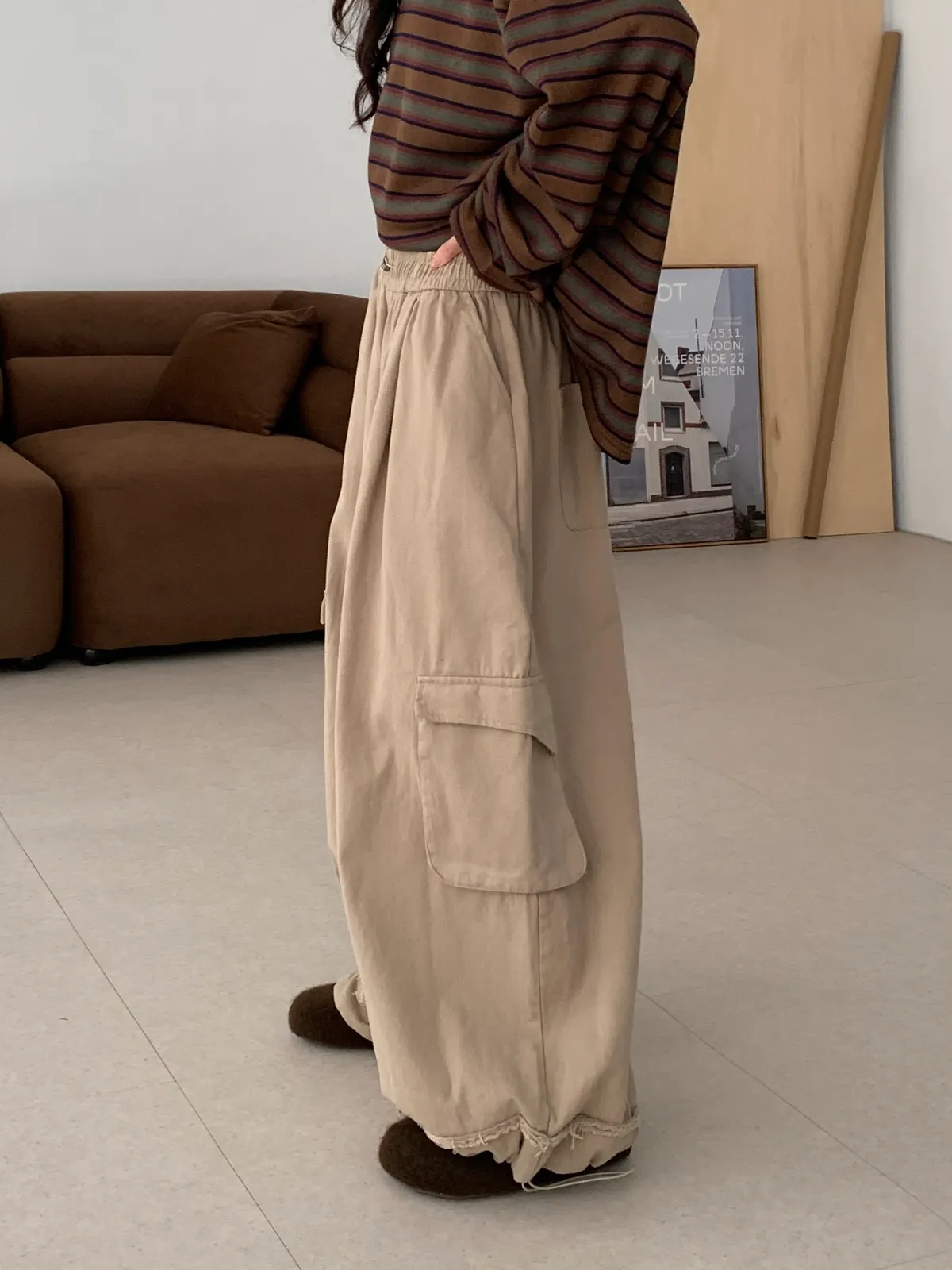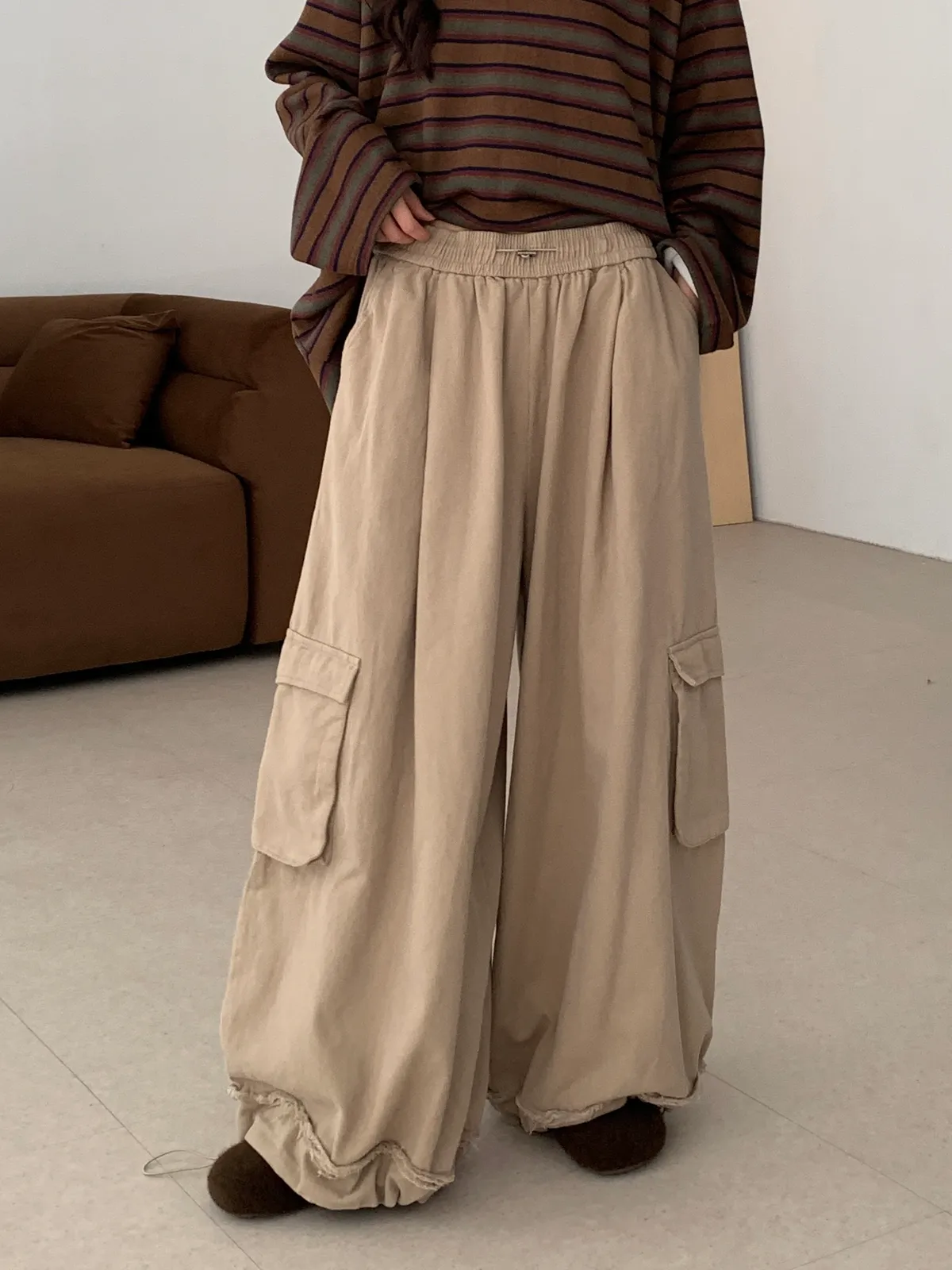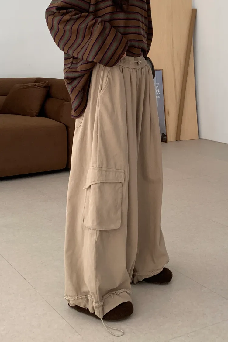 後來我發現下腳她有抽拉繩抽起來變繭型褲版更好看